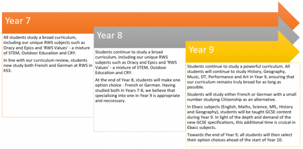 The GCSE options process begins at the start of the Spring Term in Year 9 and students make their final option choices before the Easter Break. The GCSE Options process includes a Raising Achievement Evening with Year 9 parents, an Options Assembly for Year 9 students and Options Interviews with our Senior Leadership Team. We write to parents and carers in the Summer Term of Year 9 to confirm Option choices, ready for the start of Year 10. We believe the GCSE Options process at Ravens Wood is robust and provides lots of opportunities for parental and student engagement, which helps Year 9 students to make informed choices leading to academic success at the end of Year 11.