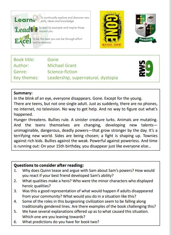 We are always looking to expand our collection. If you have suggestions for books you would like to see in our school or virtual library, please email Miss Protheroe at library@rws.uk.net.